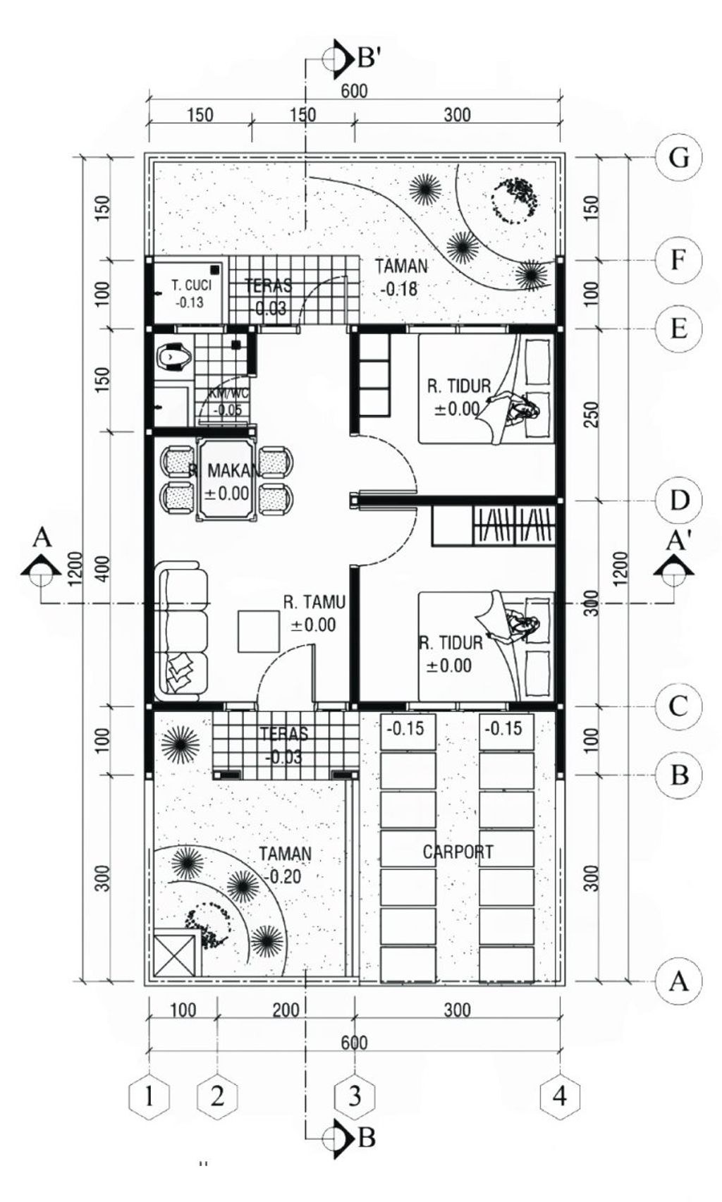 Spesifikasi Dinding : bata merah di plester