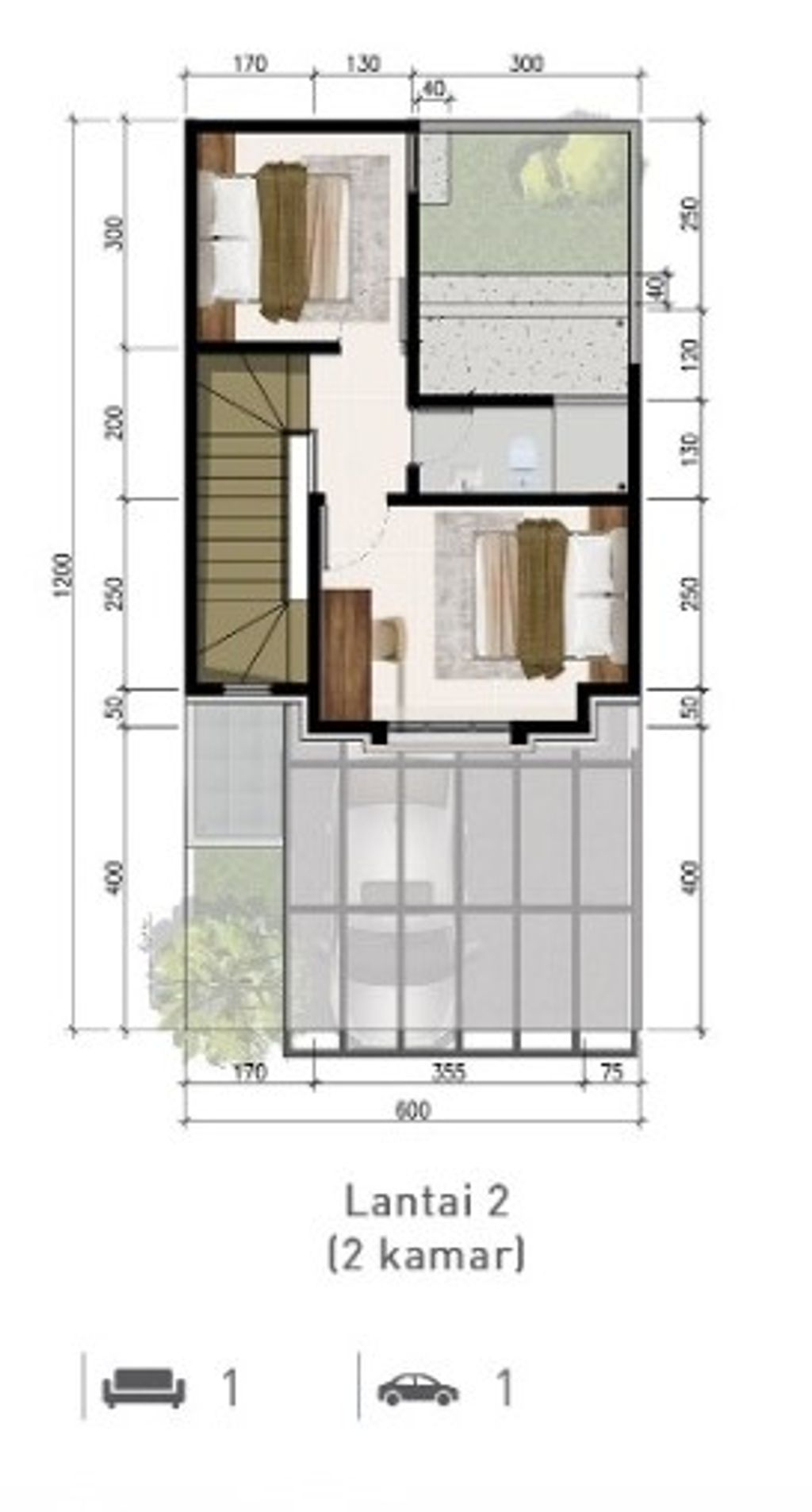 Spesifikasi Dinding : Bata Ringan, Plester, Cat